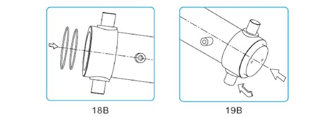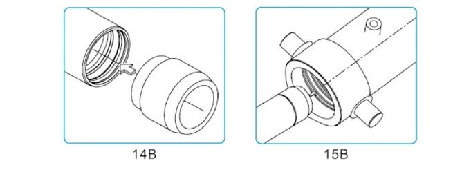 將導(dǎo)向帶置于缸筒尾部活塞槽內(nèi),加上足夠的潤(rùn)滑油。將缸筒進(jìn)一步推入外缸筒直到導(dǎo)向帶完全處于外缸筒中。
