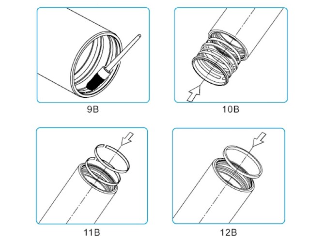 裝好一個(gè)缸筒后,將缸筒繼續(xù)向前推并將卡簧裝入上一節(jié)缸筒內(nèi)壁上對(duì)應(yīng)的卡簧